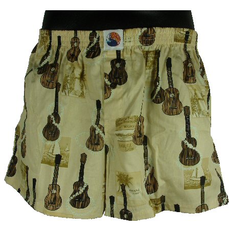 HBS15-UKULELE-BEIGE Hawaiian Boxer Shorts