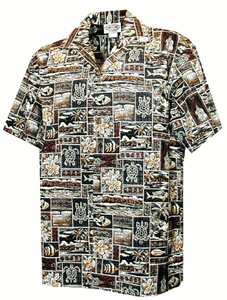 PL211-4762-BROWN ボーイズ ハワイアンアロハシャツ(ブラウン)