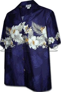 PL410-3816-NAVY コットン ハワイアンアロハシャツ(ネイビー)