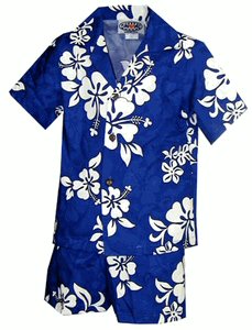 PL211-3662-NAVY ボーイズ ハワイアンアロハシャツ(ネイビー)