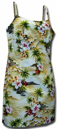 PL306-3238-MAIZE Womens Short Hawaiian Spaghetti Dress