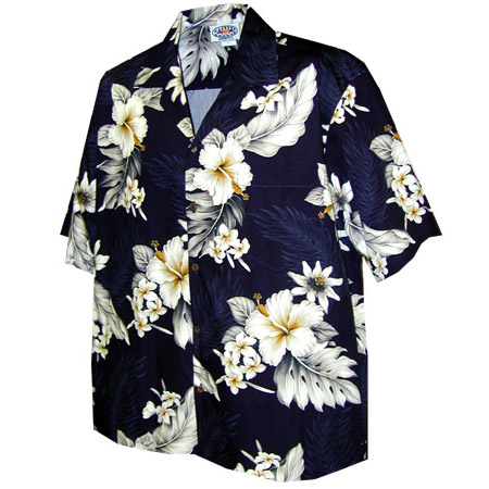 PL410-3858-NAVY Mens Cotton Hawaiian Shirt