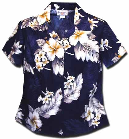 PL348-3162-NAVY コットン レディースフィットアロハシャツ(ネイビー)