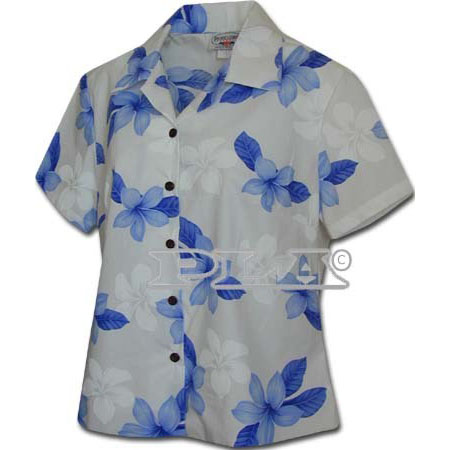 PL348-3104-BLUE コットン レディースフィットアロハシャツ(ブルー)