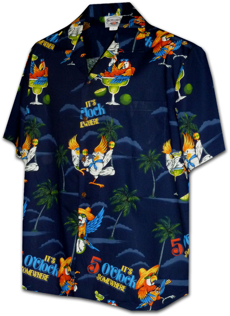 PL410-3739-NAVY コットン ハワイアンアロハシャツ(ネイビー)