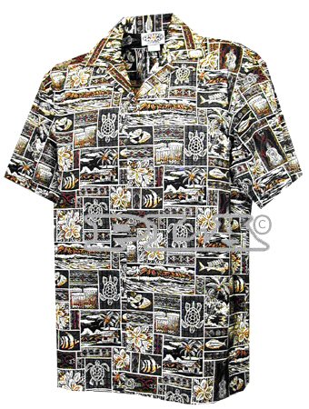 PL410-3816-BLACK コットン ハワイアンアロハシャツ(ブラック)