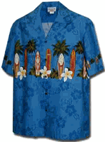 PL410-3820-BLUE コットン ハワイアンアロハシャツ(ブルー)