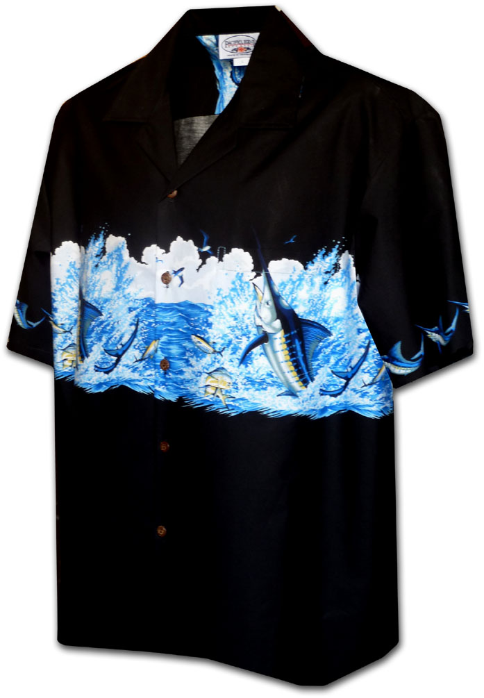 PL440-3747-BLACK Hawaiian Men's Border Aloha Shirt