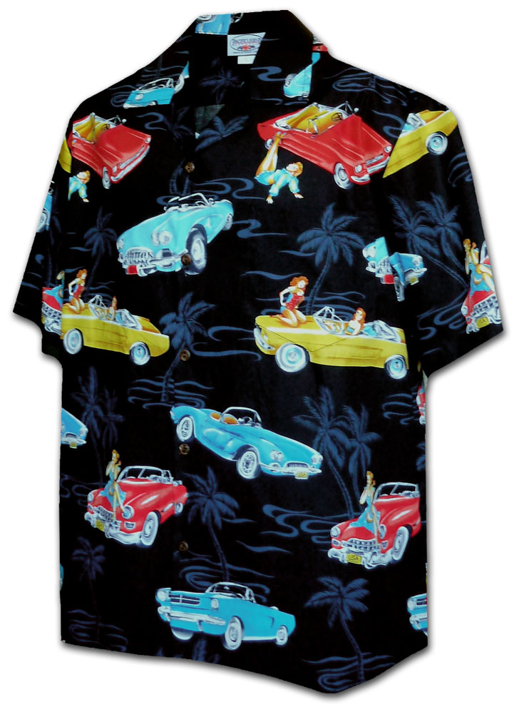 PL410-3820-BLACK コットン ハワイアンアロハシャツ(ブラック)