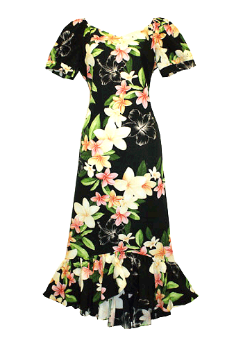 Elegant Muumuu dress for dancing, parties and weddings. Cute ruffles at sleeve and hem. Made of 100% Rayon for excellent comfort.